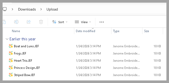 There are many different upload scenarios depending on how someone stores their files. They may choose to store all files associated with a design in a folder or they may store only one file for each design combined into one folder. We will explore the later and walk through an example showing how to upload multiple single file designs.